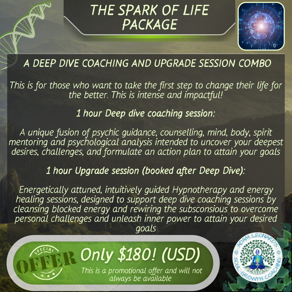 I have broken down individual services such as Counselling, Hypnotherapy, and Psychic readings/healing, to give more clarity on what they offer, which can be booked individually if you wish, further down this page. However, If you are truly looking to make deeply profound changes in your life, Soul Growth Coaching is what you need. If you are interested in Soul Growth Coaching you can book in a free discovery call where we can connect and figure out what is most important for your growth and if there is a way we can work with eachother. Alternatively, you can take advantage of the current promotional offer to start your journey to the best version of yourself straight away
